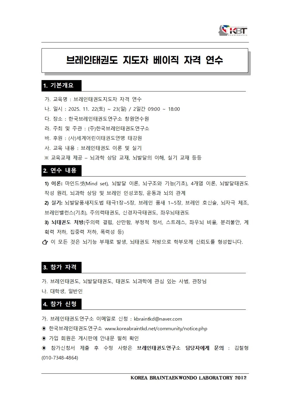 4. Âü°¡ ½Åû °¡. ºê·¹ÀÎűǵµ¿¬±¸¼Ò À̸ÞÀÏ·Î ½Åû : kbraintkd@naver.com ◉ Çѱ¹ºê·¹ÀÎűǵµ¿¬±¸¼Ò www.koreabraintkd.net/community/notice.php ◉ °¡ÀÔ È¸¿øÀº °Ô½ÃÆÇ¿¡ ¾È³»¹® ÇÊÈ÷ È®ÀÎ ◉ Âü°¡½Åû¼ Á¦Ãâ ÈÄ ¼öÁ¤ »çÇ×Àº ºê·¹ÀÎűǵµ¿¬±¸¼Ò ´ã´çÀÚ¿¡°Ô ¹®ÀÇ : ±èöÇü(010-7348-4864)